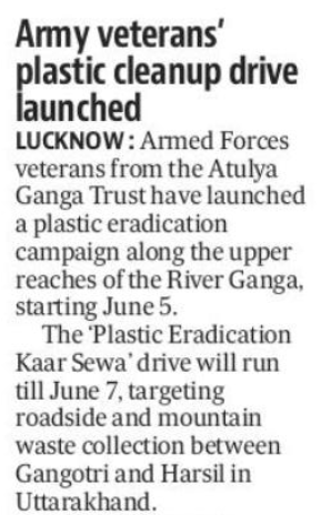 Army Commander, Central Command flags off Plastic Eradication Kaar Sewa by Atulya Ganga Trust for rejuvenation of Ganga